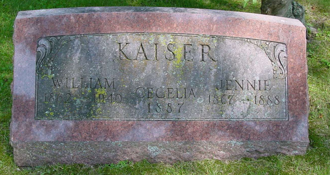 William Kaiser, born 30 June 1862 in Ontario, probably in Vaughan Township, York County; and died 23 December 1940 in Detroit, Wayne County, Michigan. He was staying with his daughter Bertha Kaiser Ballou at the time of his death.