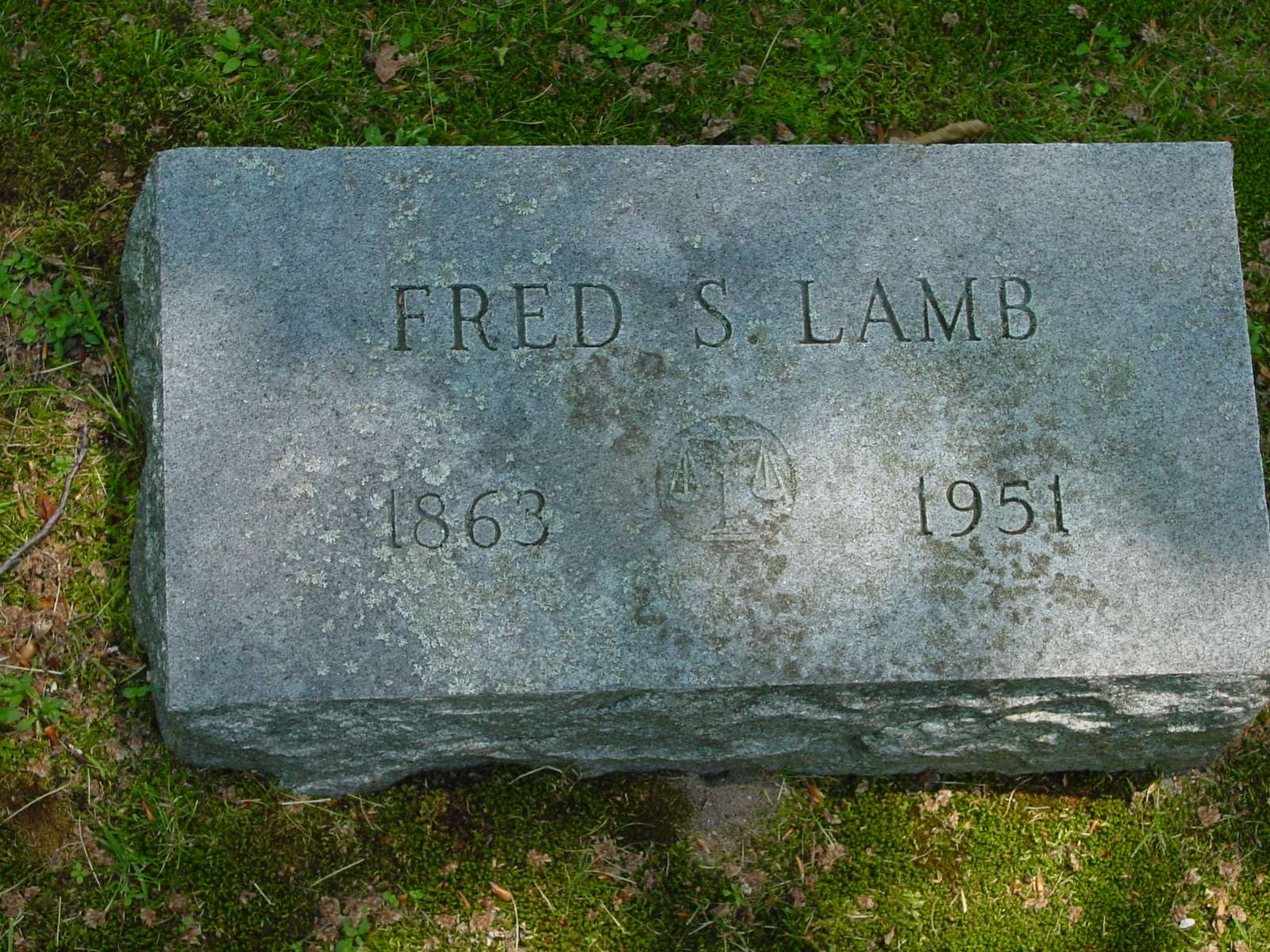Fred S. Lamb was born, according to his marriage record, in St. Johns, Michigan in 1862. He immediately preceded my grandfather as probate judge in Wexford County, and I was fascinated by the scales of justice on his footstone when I first saw it.