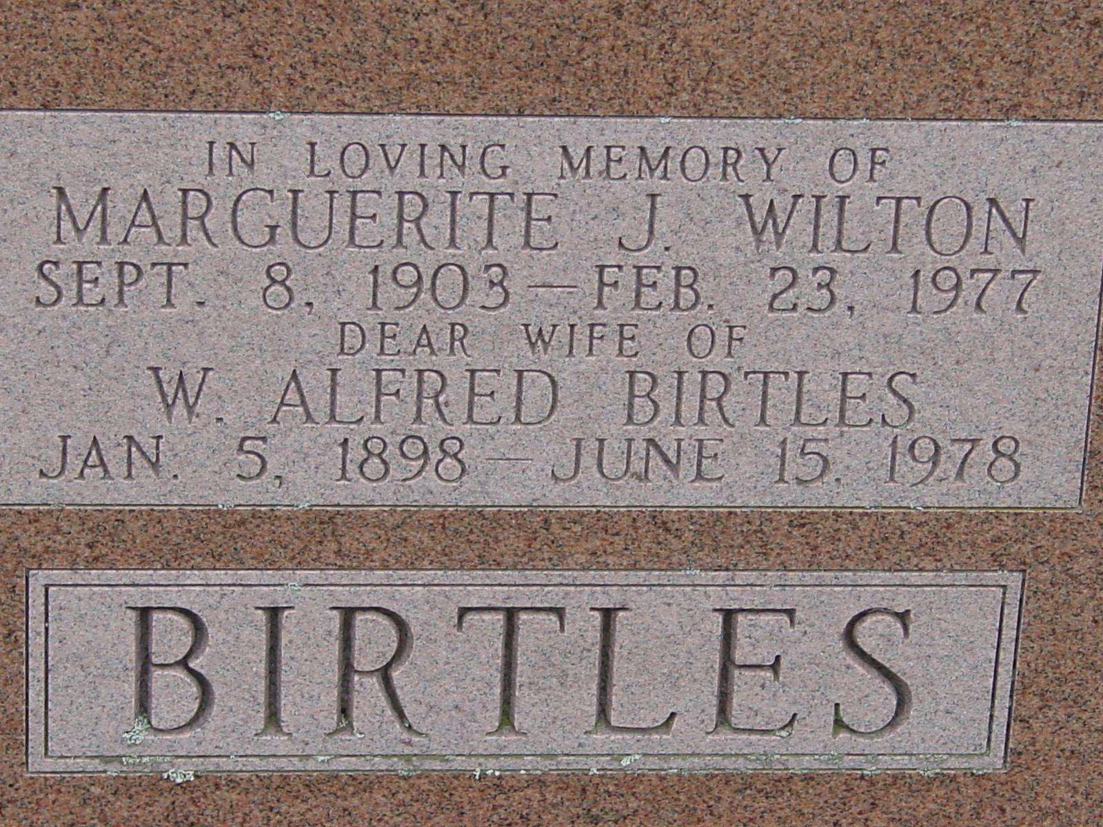 W. Alfred Birtles and wife Marguerite J. Wilton. Marguerite Jeanette Wilton was the daughter of Samuel Wilton and Mary Anne Long according to her birth record.