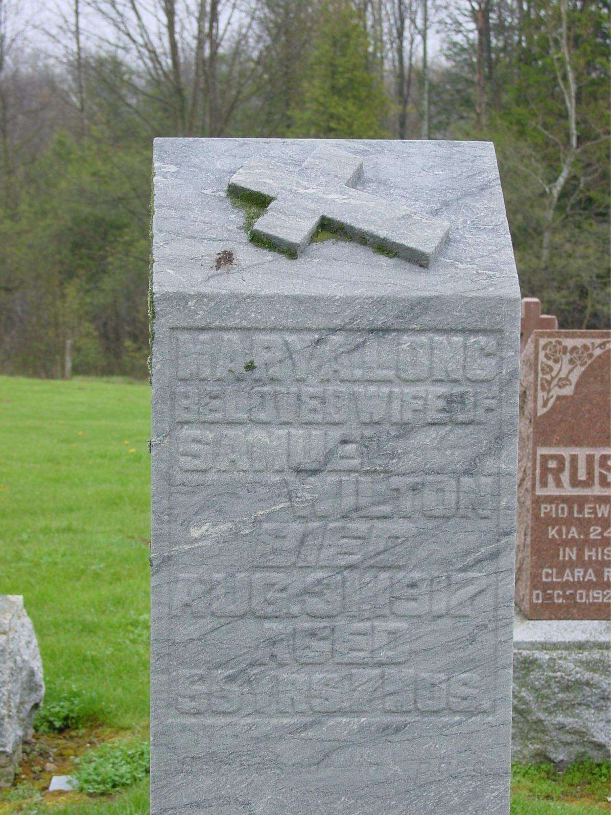 Mary Long, 1862-1917, wife of Samuel Wilton. Mary’s parents were John Long and Mary Frilch, according to her death record. She was a sibling of the John and Joseph buried on this lot.