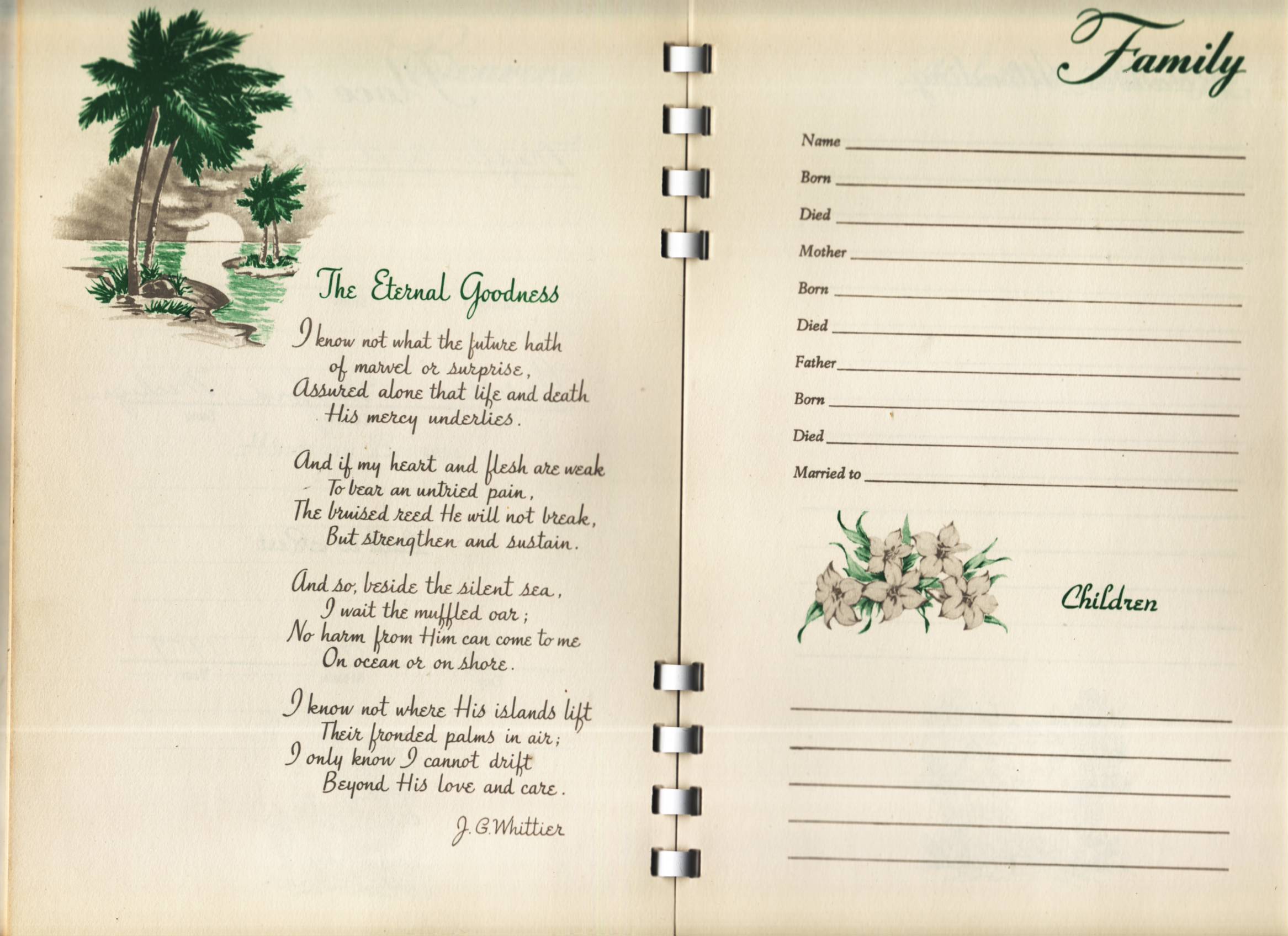 In addition to my grandmother’s wedding book, I also am the custodian of the register created at her funeral. I will also post all the pages, with comments when I feel may be relevant. The pages on the seventh and eighth scan are blank.