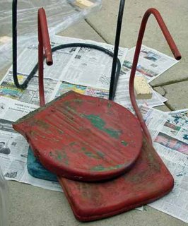 Oh yes, the chairs. I’d been wanting some of those old metal lawn chairs like we sat in when I was a child, just a few years ago. Papa and I purchased 2 of those gems during a road trip through Ohio several years ago. You may know the story, the metal was solid, etc, etc, etc. This project has been filed in the garage for several years. I started this week and was dismayed to find that it’s FRIDAY already and I haven’t even removed all the old paint. So, you know what is on today’s list. Wish me luck–better still come over and help.