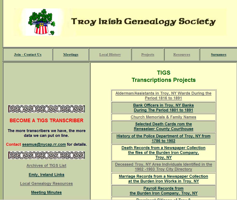 The collective knowledge of the group and their research experience in the area really shine on the “Resources” page. One of special interest to me was the link titled “Troy Genealogy Research Tips”. This was a great place for me to get familiar with the area, and see what was available.