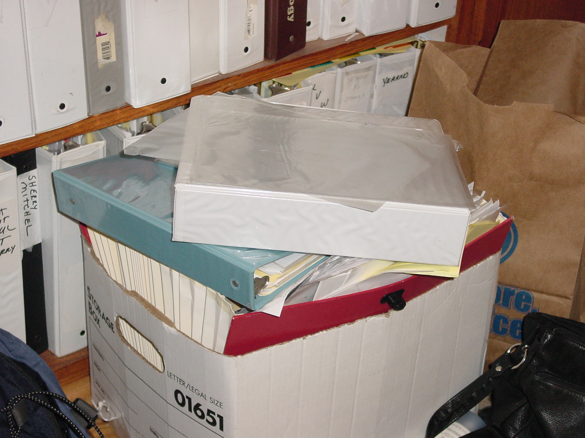 So, the subject comes up, as it always does, about the piles of items in our “offices”.  Apparently one gentlemen is having grandchildren visit, and he’ll have to clear at least the floor to make room for a crib.  Another person  lost some important information he needs now; he believes it is somewhere in a pile.  But he is looking on the internet for replacement information, as if that would save having to file all that crud eventually.  I actually have a box that I added to my pile so I could put everything that I haven’t filed yet on it or in it.