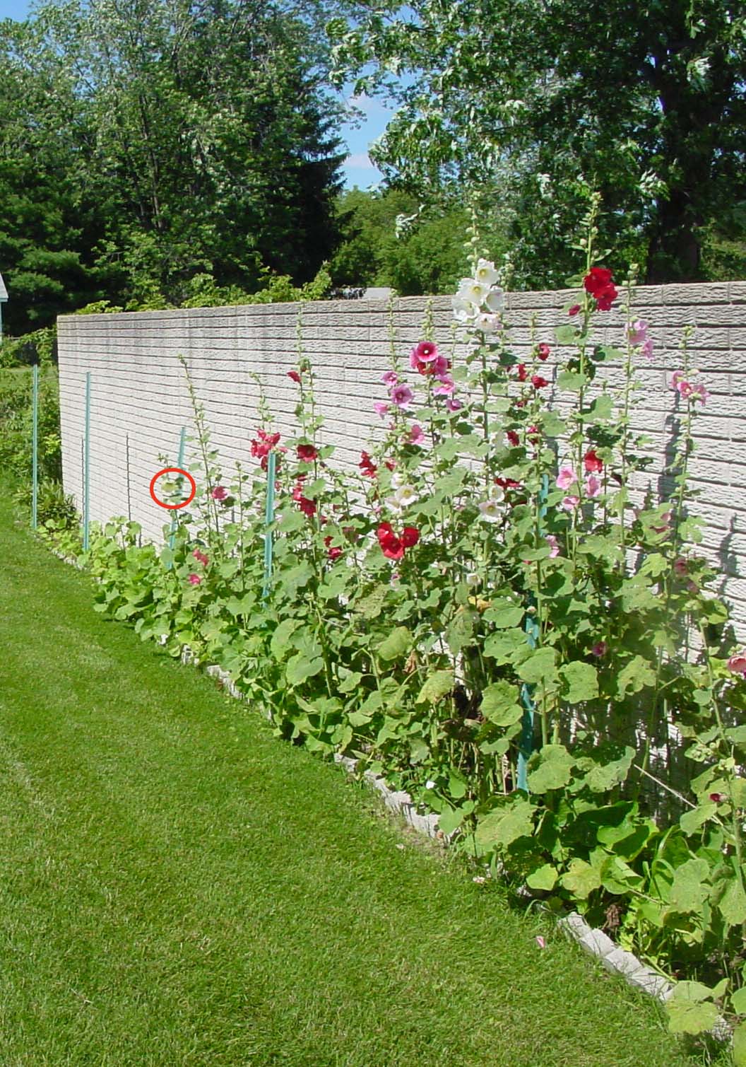 This is the year that I have a lot of colors, at least as far as Hollyhocks are concerned. There is everything from white to dark pink, almost red. Then, I noticed something, do you see it?