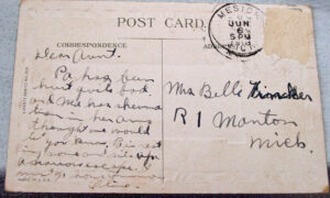 Addressed to Mrs Belle Tinker, R1 Manton Mich.